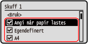 Papirformat der avmerkingsboksene er tomme vises ikke på skjermbildet for papirinnstillinger.