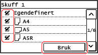 Merk av i boksene for hvilke papirformat som skal skjules, og klikk på [Bruk].