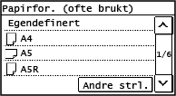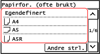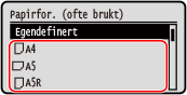 Du kan endre papirformatet som vises på skjermbildet i trinn 1. Skjule ubrukte papirformat |