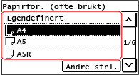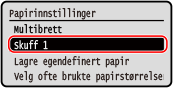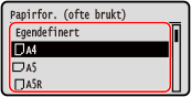 Du kan endre papirformatet som vises på skjermbildet i trinn 3. Skjule ubrukte papirformat |