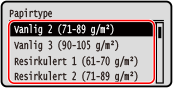 (Papirinnstilling-tast) på kontrollpanelet. Kontrollpanel