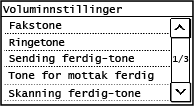 [Fakstone] / [Ringetone] / [Sending ferdig-tone] / [Tone for mottak ferdig] / [Skanning ferdig-tone]