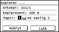 for å vise kopijobbstatusen. Vise status og logg for utskriftsjobb1 | Åpne materen. ![]() |