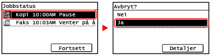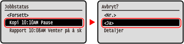 Hvis skjermbildet for jobbliste vises, velger du hvilken jobb som skal kanselleres, velger [<Ja>] og trykker på