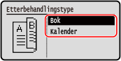 1 | På skjermbildet for kopiering, trykk på [2-sidig]  [Original/etterbehandlingstype]. Skjermbildet [Orig./etterbehand.type] vises. |