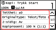 På skjermbildet for kopiering, velg [Tetthet] og trykk på