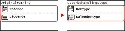 2 | Velg [1->2-sidig] og trykk på  . Skjermbildet [Originalretning] vises. |