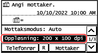 Angi mottakereAngi faksnummeret med talltastene eller velg mottakeren registrert i adresseboken ved å trykke på [Mottaker] for å ringe.