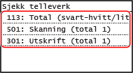 Viser det totale antallet sider kopiert og utskrevet i svart og hvitt.