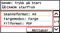 Sjekk at mottakeren er korrekt og trykk deretter på [Start skann.].
