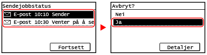 Hvis skjermbildet for jobbliste vises, velger du hvilken jobb som skal kanselleres, og trykker på [Ja].