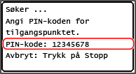 Når dette skjermbildet vises, må du registrere WPS PIN-koden til trådløst LAN-ruteren før det har gått 10 minutter.