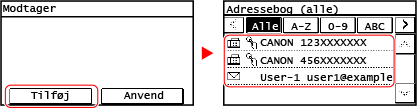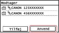 Hvis skærmen [PIN til adressebog] vises, skal du indtaste PIN-koden og trykke på [Anvend].
