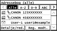 Når du henter adressekartoteket fra skærmen [Hjem], eller scannings- eller faxskærmen, vises følgende skærm.