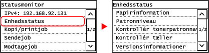 Når der vises et rullepanel, betyder det, at der er nogle elementer eller oplysninger, som ikke vises på skærmen. Tryk på [