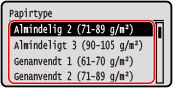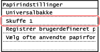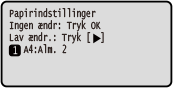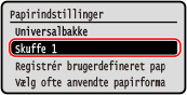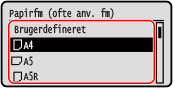 Du kan ændre den papirstørrelse, der vises på skærmen i trin 3. Skjule ubrugte papirstørrelser |