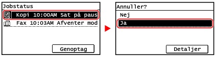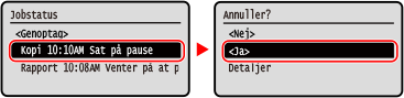 Hvis skærmen med joblisten vises, skal du vælge det job, du vil annullere, og vælge [<Ja>] og trykke på