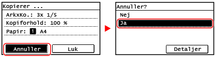 Følg instruktionerne på skærmen, hvis du vil annullere en kopihandling.