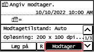 Indtast faxnummeret med taltasterne, eller vælg den destination, der er registreret i adressekartoteket, ved at trykke på [Modtager].