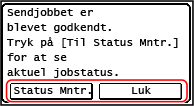 Kontrol af afsendelses- og lagringsstatus samt log for scannede data (Model med berøringspanel)Hvis du trykker på [Luk], vises scanningsskærmen.