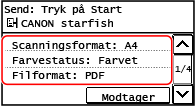 Kontroller, at destinationen er korrekt, og tryk derefter på [Start scann.].