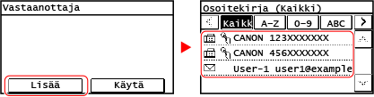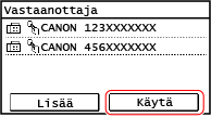 Jos [Osoitekirjan PIN] -näyttö tulee esiin, syötä PIN ja paina [Käytä].