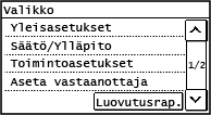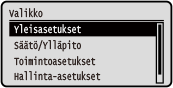. Asetukset-valikon vaihtoehdotKosketuspaneelimalli ![]() | 5 rivin LCD-malli ![]() |