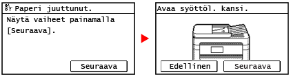 Näyttöesimerkki: Kun tapahtuu virhe Kosketuspaneelimalli ![]() 5 rivin LCD-malli ![]() |