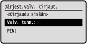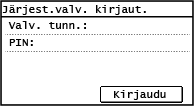Jos järjestelmänvalvojan tunnus on asetettu, kirjautumisnäkymä näytetään toiminnoille, joihin tarvitaan järjestelmänvalvojan oikeudet. Kirjaudu syöttämällä järjestelmänvalvojan tunnus ja PIN-koodi.