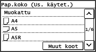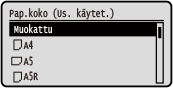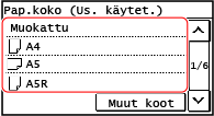 Voit vaihtaa näytössä näkyvän paperikoon vaiheessa 1. Käyttämättömien paperikokojen piilottaminen |