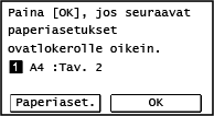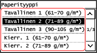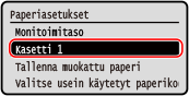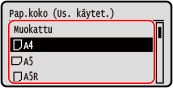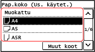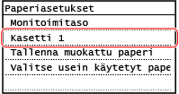 Voit vaihtaa näytössä näkyvän paperikoon vaiheessa 3. Käyttämättömien paperikokojen piilottaminen |