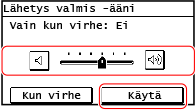 Säädä äänenvoimakkuutta vetämällä liukusäädintä vasemmalle tai oikealle ja paina [Käytä].