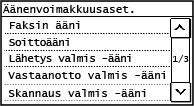 [Faksin ääni] / [Soittoääni] / [Lähetys valmis -ääni] / [Vastaanotto valmis -ääni] / [Skannaus valmis -ääni]