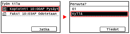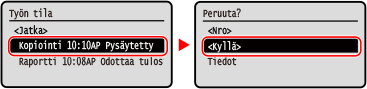 Jos työluettelonäkymä tulee esiin, valitse peruutettava työ ja paina [Kyllä].