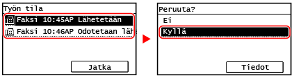 Jos työluettelonäyttö tulee esiin, valitse peruutettava työ ja paina [Kyllä].