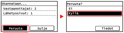 Voit peruuttaa faksin lähettämisen toimimalla näytön ohjeiden mukaan.