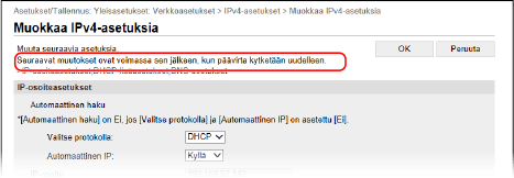 * Tietokoneen ja etäkäyttöliittymän näyttökielien tulee olla samat. Jos näyttökielet eivät ole samat, syötettyjä tietoja ei välttämättä näytetä oikein tai kansioon, palvelimeen tai muuhun määritettyyn kohteeseen ei välttämättä voida viitata.