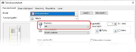 Valitse asiakirjan paperikoko tulostusasetusten kohdasta [Paperikoko].