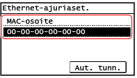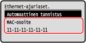 Voit näyttää laitteeseen asetetun MAC-osoitteen, kun laite on yhdistetty langalliseen lähiverkkoon.