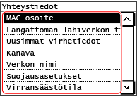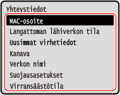 Langattoman lähiverkon MAC-osoitteen ja yhteystietojen näyttäminen