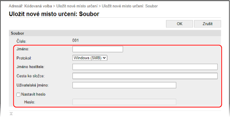 Pokud chcete uložit sdílenou složku jako místo určení, připravte si a mějte po ruce následující informace: