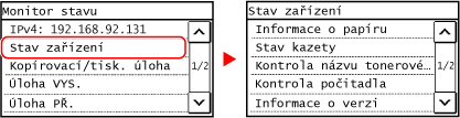 Když je zobrazen posuvník, znamená to, že existují položky nebo informace, které se na obrazovce nezobrazují. Stiskněte [