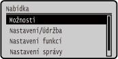 na ovládacím panelu. Položky nabídky nastavení|