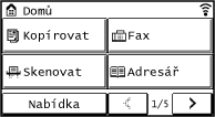 (tlačítko Domů) na ovládacím panelu. Ve výchozím nastavení se obrazovka [Domů] zobrazí po zapnutí napájení a ihned po zavření úvodní obrazovky. Obrazovka [Domů]|