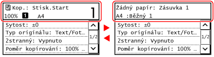 Automatické vymazání nastaveníPokud se v určité době neprovedou žádné operace, nastavení konfigurovaná na obrazovce se ve výchozím nastavení vymažou a zobrazí se obrazovka [Domů]. Dobu, po které budou nastavení vymazána, a obrazovku, která se následně zobrazí, je možné změnit.