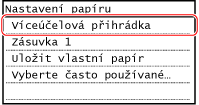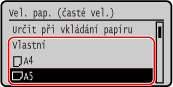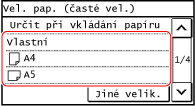 Při uložení často používaných nestandardních velikostí papíru se uložená velikost zobrazuje jako velikost papíru. Uložení papíru nestandardní velikosti (vlastní papír)