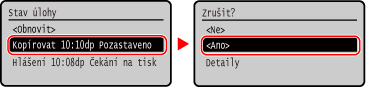 Pokud se zobrazí obrazovka se seznamem úloh, vyberte úlohu, kterou chcete zrušit, a stiskněte tlačítko [Ano].