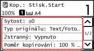 Na obrazovce kopírování vyberte možnost [Sytost] a stiskněte tlačítko