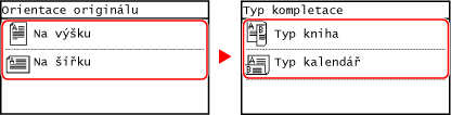 Vyberte orientaci nastaveného originálu a stiskněte tlačítko  .