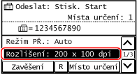 Zadejte číslo faxu pomocí numerických kláves nebo vyberte místo určení uložené v adresáři stisknutím tlačítka [Místo určení].